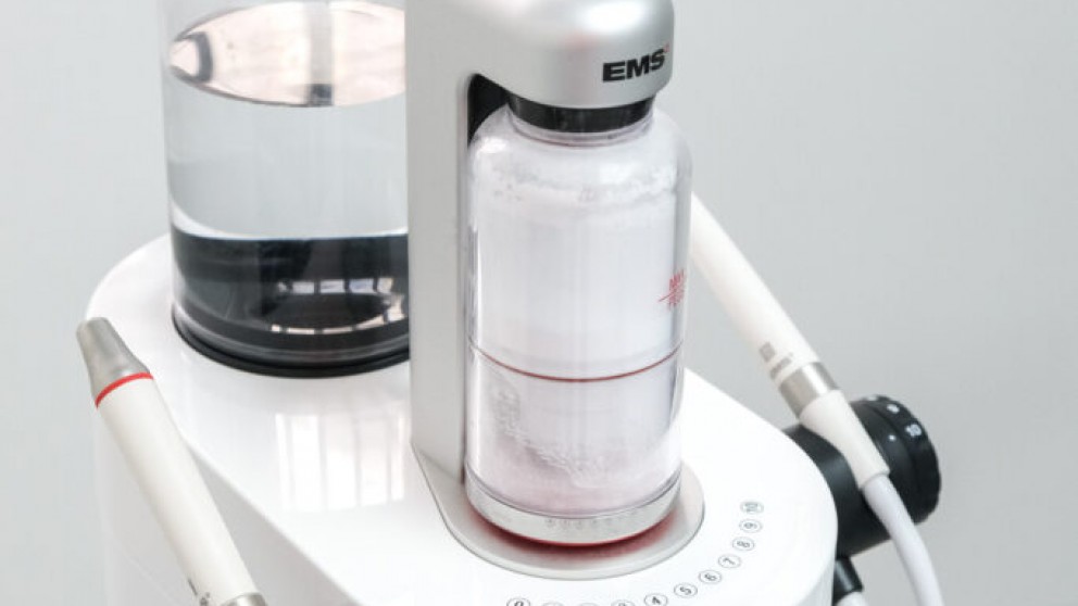 - Rimozione di biofilm, macchie e tartaro di recente formazione a livello sopragengivale e sottogengivale mediante una polvere a base di eritritolo che risulta più delicata. Rimozione del biofilm anche da lingua e palato.